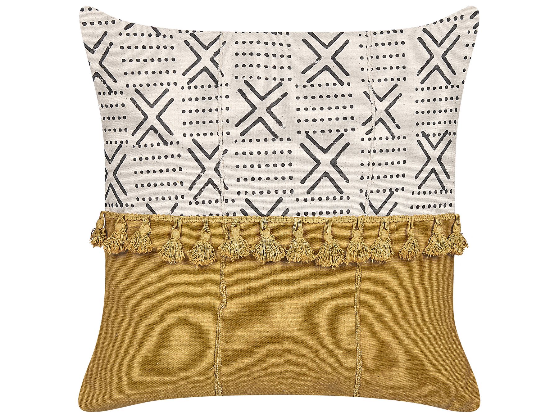 This plump scatter cushion is an ideal complementary accent for your sofa or a bed's headboard. The blend of mustard yellow fabric with hand-made tassels and geometric pattern make it an eye-catching piece of accessory. What makes it special is the motif that was made using block-printing technique. If you're looking for a cushion that will be unique and beautiful, this one will be perfect.